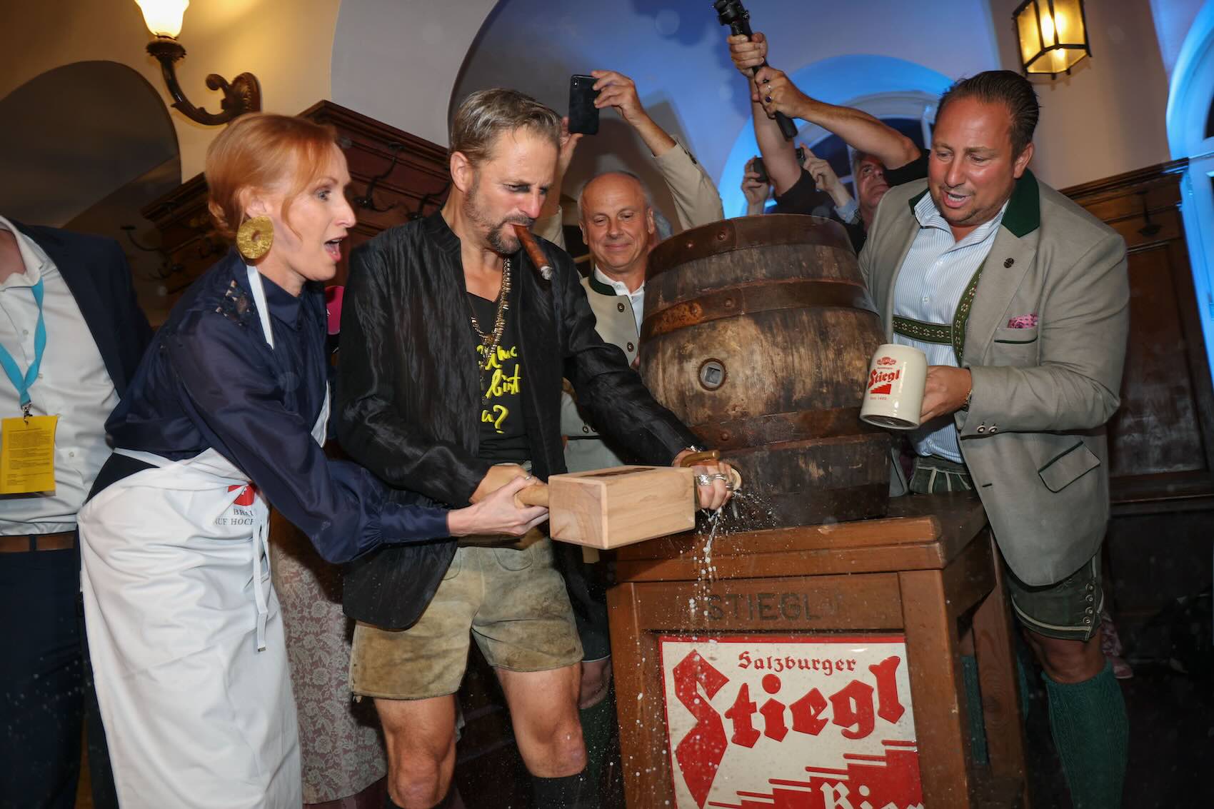 Ob witterungsbedingt am Domplatz oder im Festspielhaus gespielt wird, das ist jedes mal eine Überraschung - die Party danach findet seit vielen Jahren aber immer am gleichen Ort statt: im Stiegl-Keller. Und so war der historische Lagerkeller für das Bier auch heuer wieder die perfekte Kulisse für den Auftritt von „Jedermann” Philipp Hochmair und seiner „Buhlschaft” Deleila Piasko.