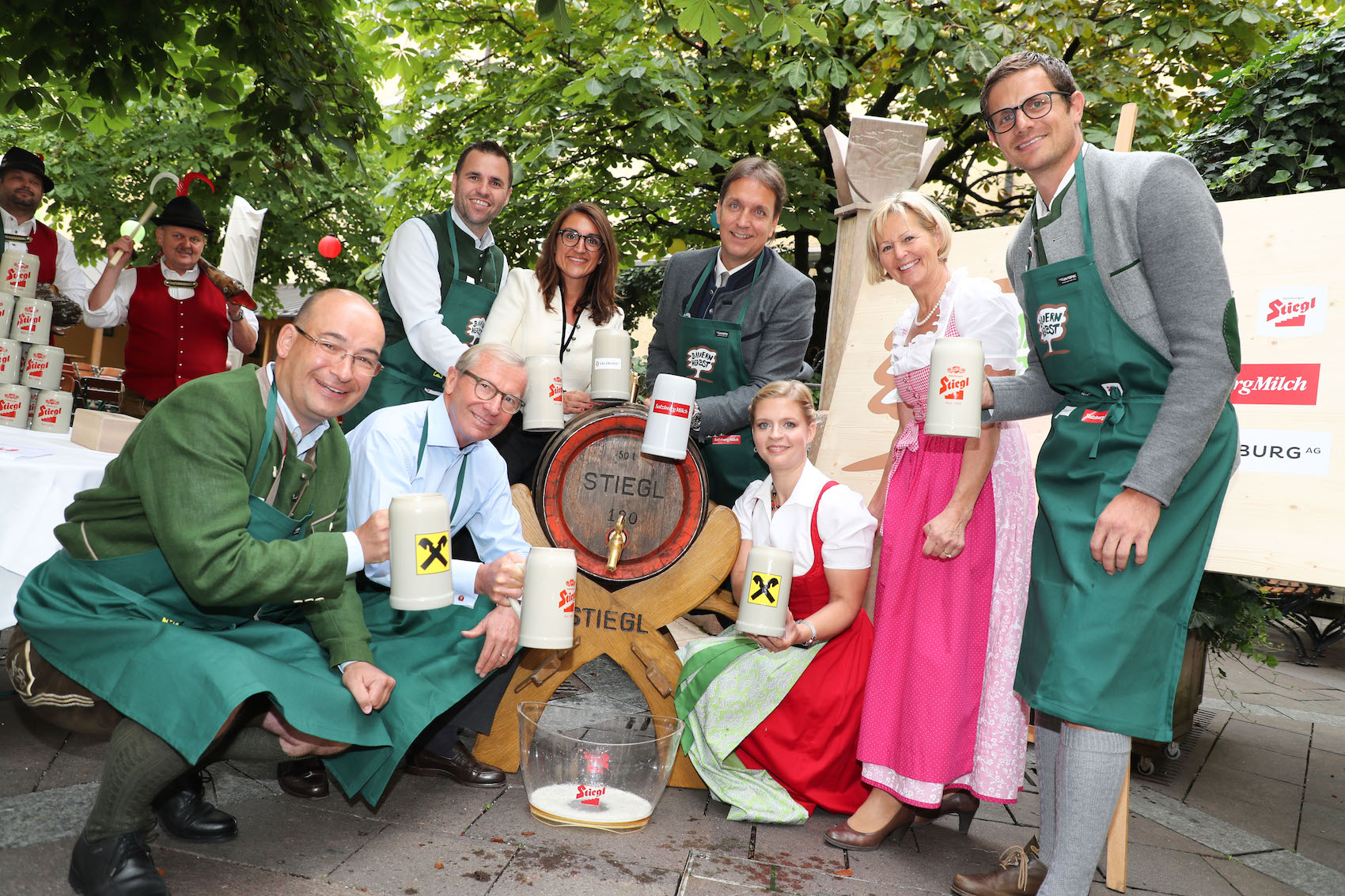 Ganz neu als Partner mit dabei sind seit diesem Jahr die SalzburgMilch und die Salzburg AG. Schon viele Jahre eng mit dem Bauernherbst verbunden ist Raiffeisen – kaum ein anderes Unternehmen ist so regional verankert. Die Brauerei Stiegl trägt mit dem würzigen „Herbstgold"-Bier alle Jahre zu einem gelungenen Bauernherbst bei. Und das Traditions-Unternehmen Gössl schneidert die passende Tracht zu den Bauernherbst-Festen.