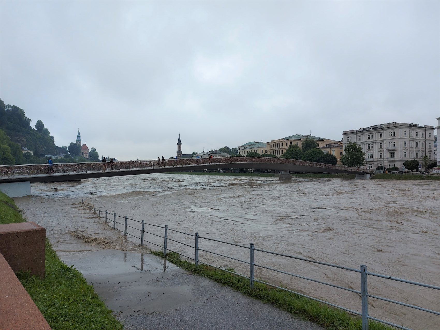 Die Pegelstände sind nach wie vor hoch. Mit Stand heute 9.30 Uhr gilt in Mittersill nach wie vor Alarmstufe 2, in der Stadt Salzburg an der Nonntaler Brücke gilt Alarmstufe 1, ebenso in der Stadt Salzburg am Mayrburger Kai. Die Warngrenze ist an drei Messstellen der Salzach und einer der Saalach überschritten. Dazu kommen Erdrutsche und Muren an vielen Stellen im Bundesland.